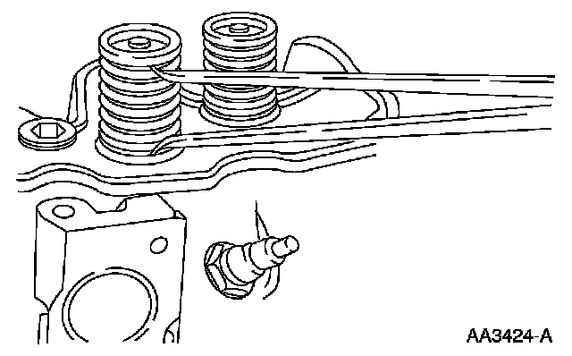 ^ Turn the valve spring and observe the space between the top of the valve spring and the square. Install a new valve spring if out of square.
