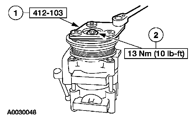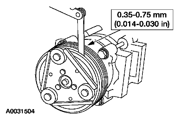 8. Install the A/C clutch disc and hub spacer(s) and the A/C clutch disc and hub.