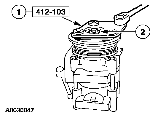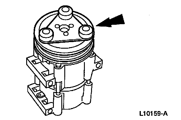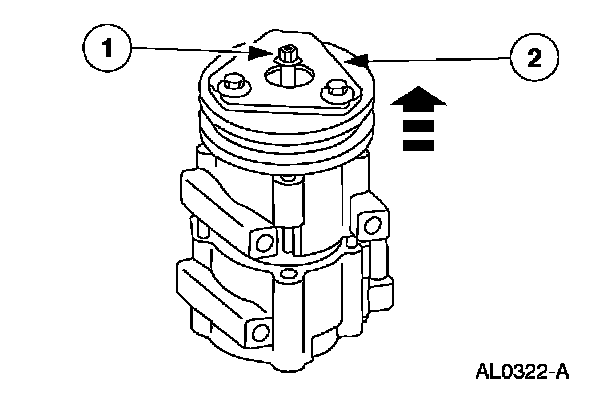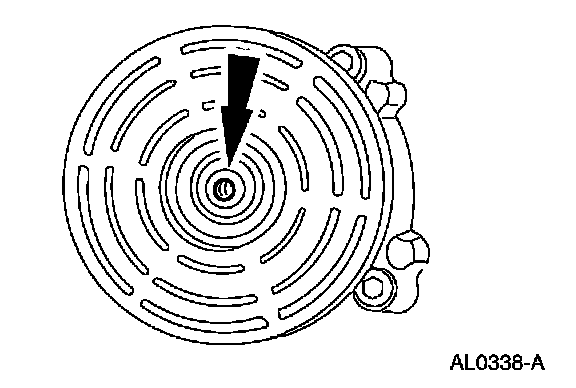 1 Thread an 8 x 1.25 mm (0.04 in) bolt into the A/C clutch disc and hub to force it from the A/C compressor shaft (if needed).