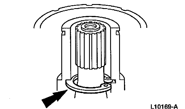 8. Pull the special tool up quickly while keeping the tool shaft against the side of the nose opening and remove the snap ring.