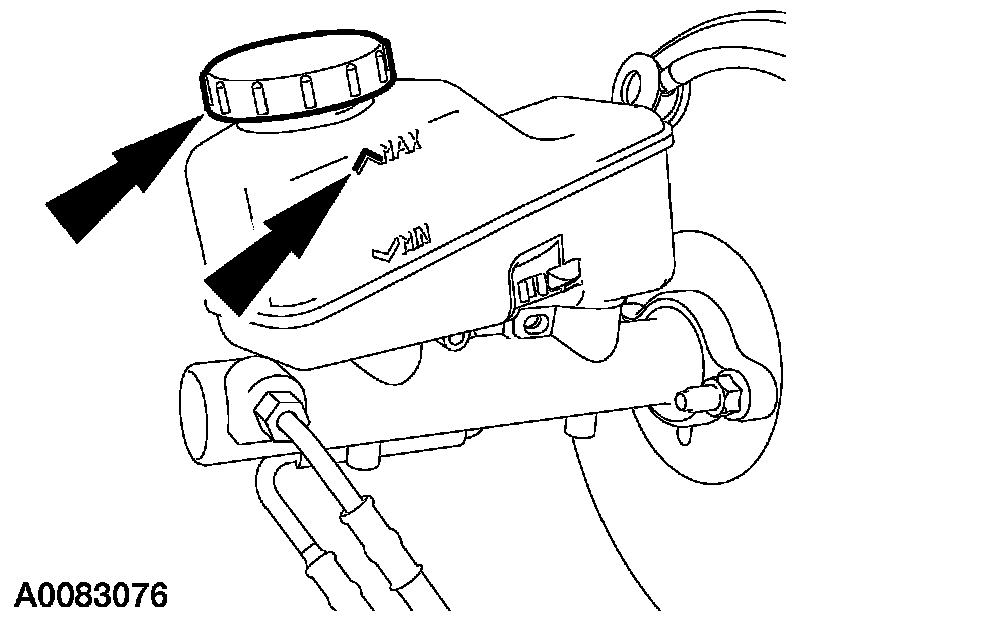 1. Clean the area then remove the brake master cylinder filler cap and fill the brake master cylinder reservoir with the specified brake fluid.
