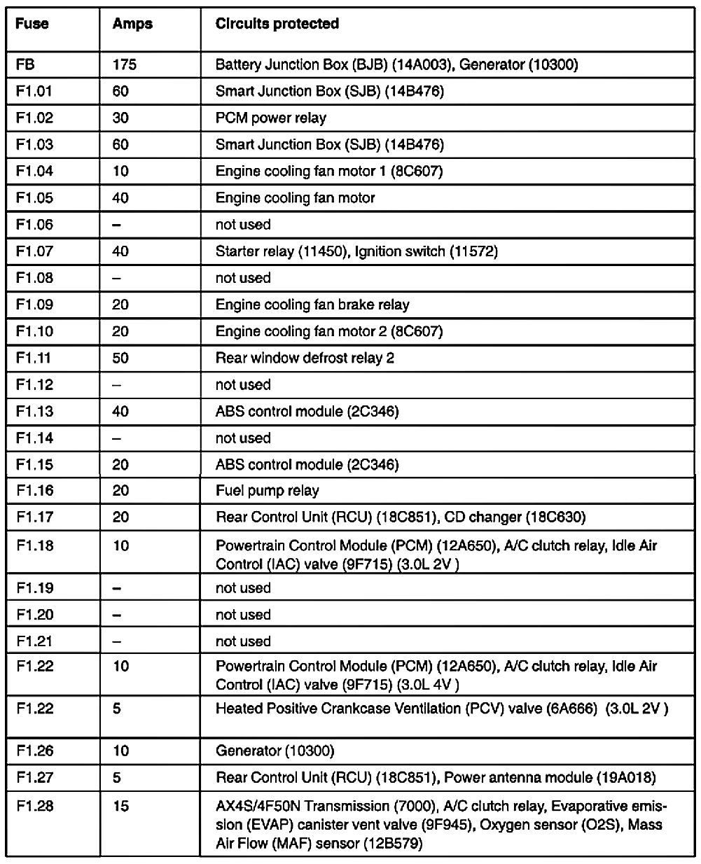 Taurus V6-3.0L VIN U