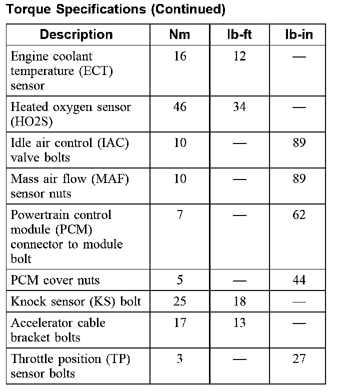 Torque Specifications (Part 2):