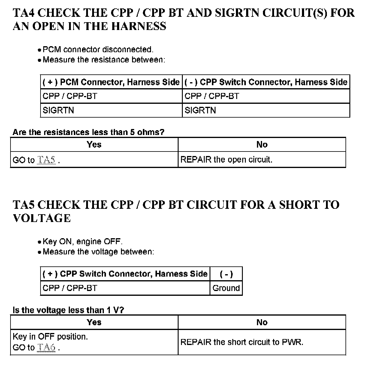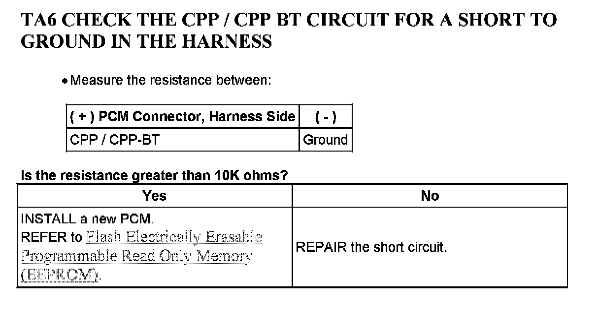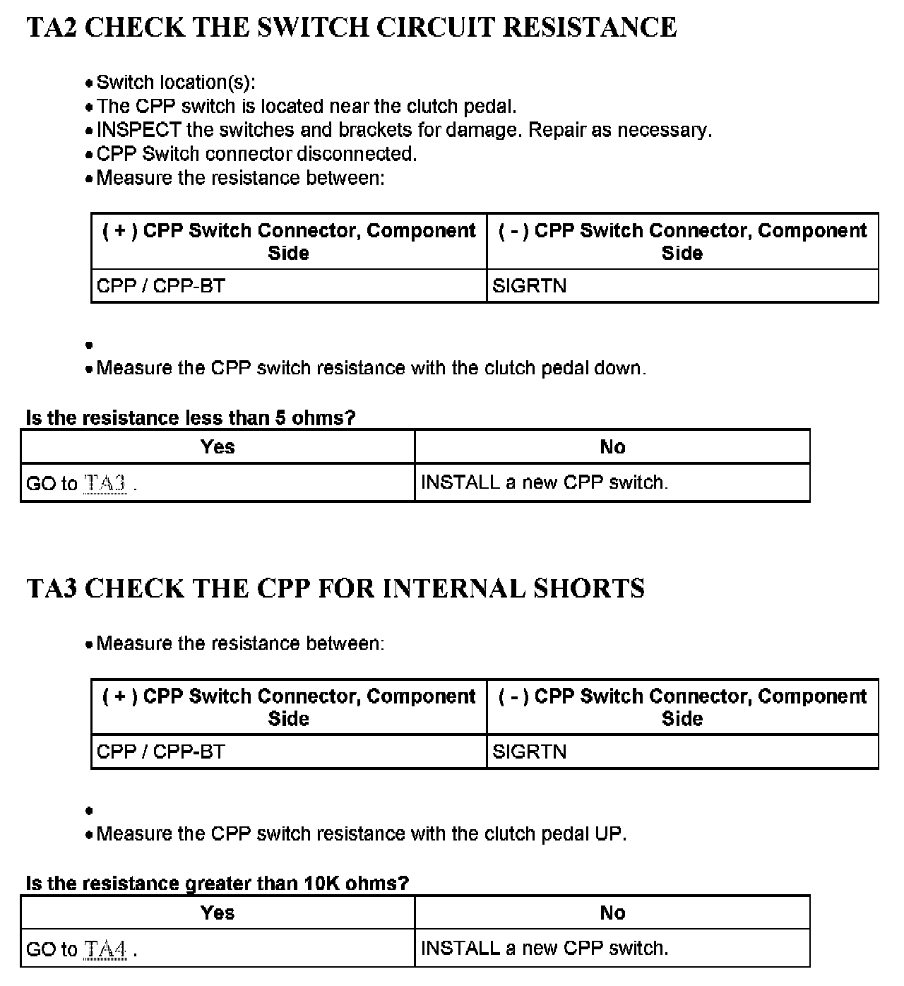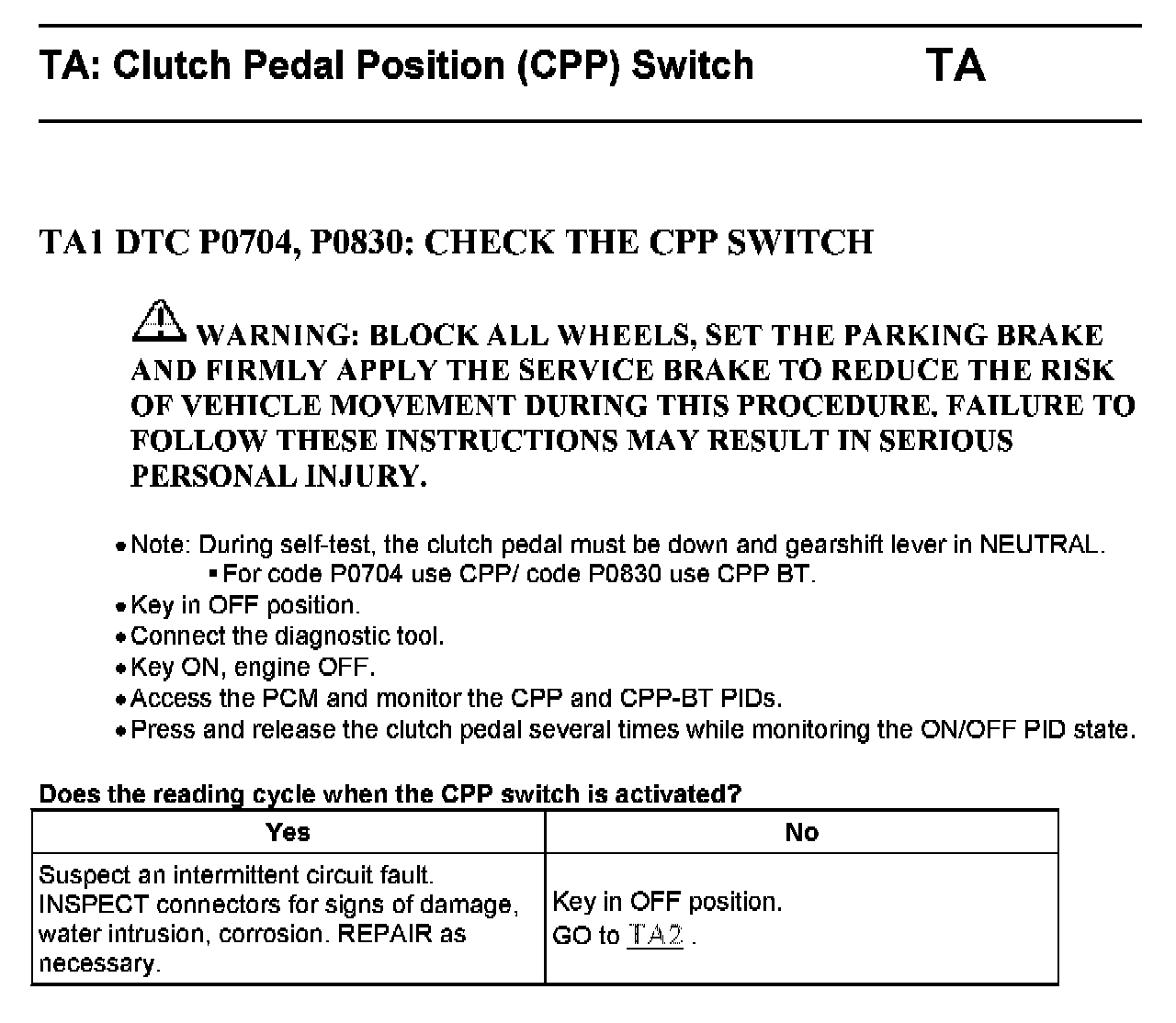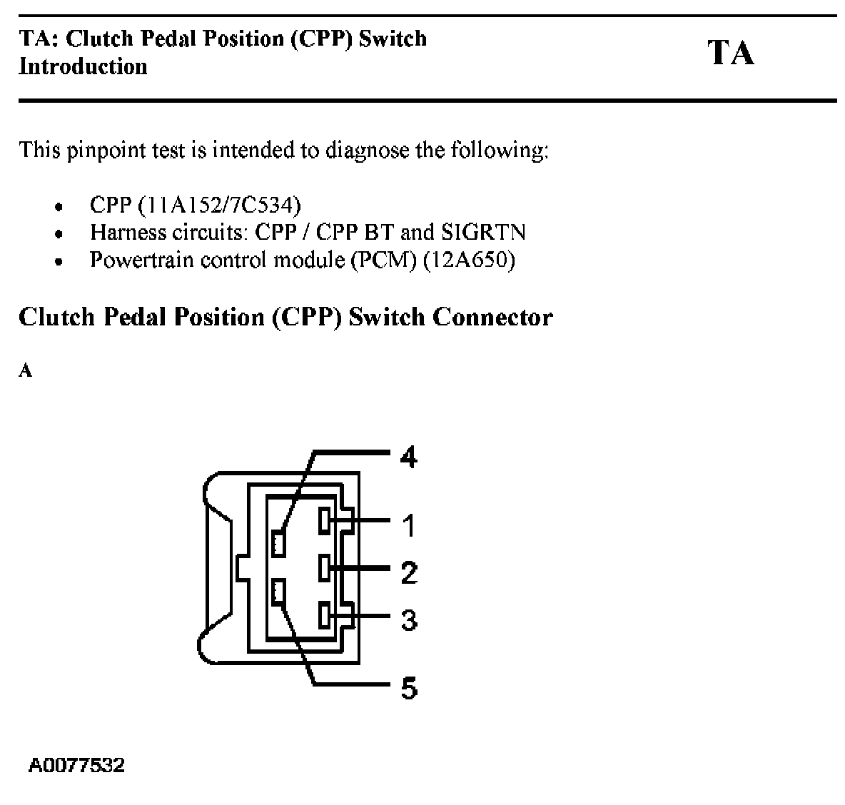 Tests TA: Clutch Pedal Position (CPP) Switch