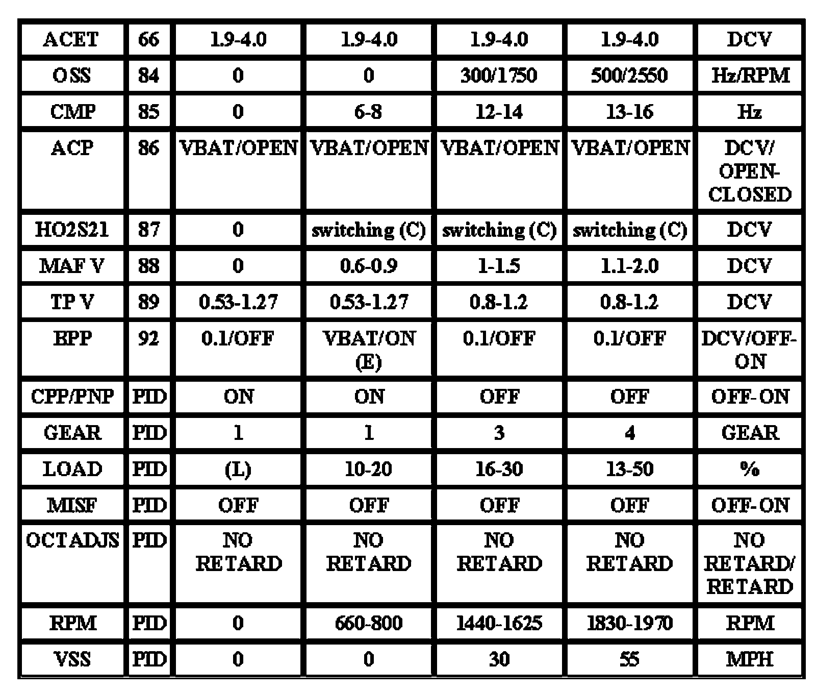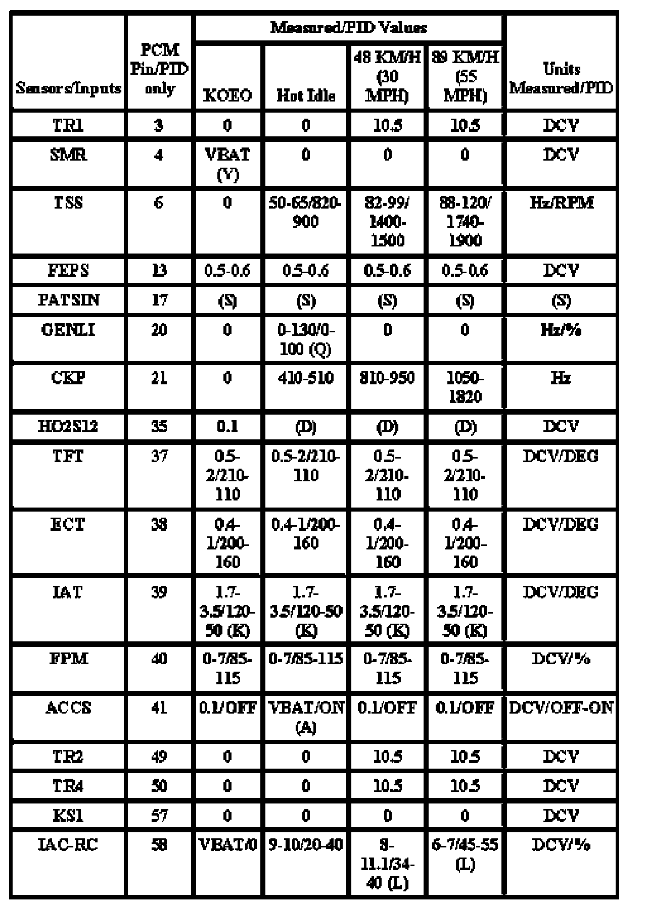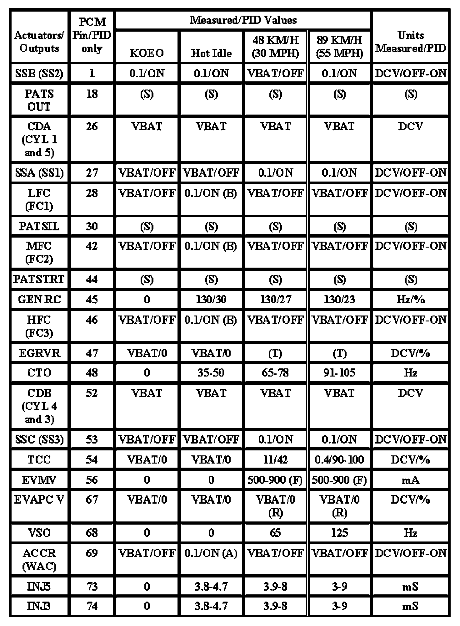 Note: All generic OBD readings under no load (PARK or NEUTRAL).