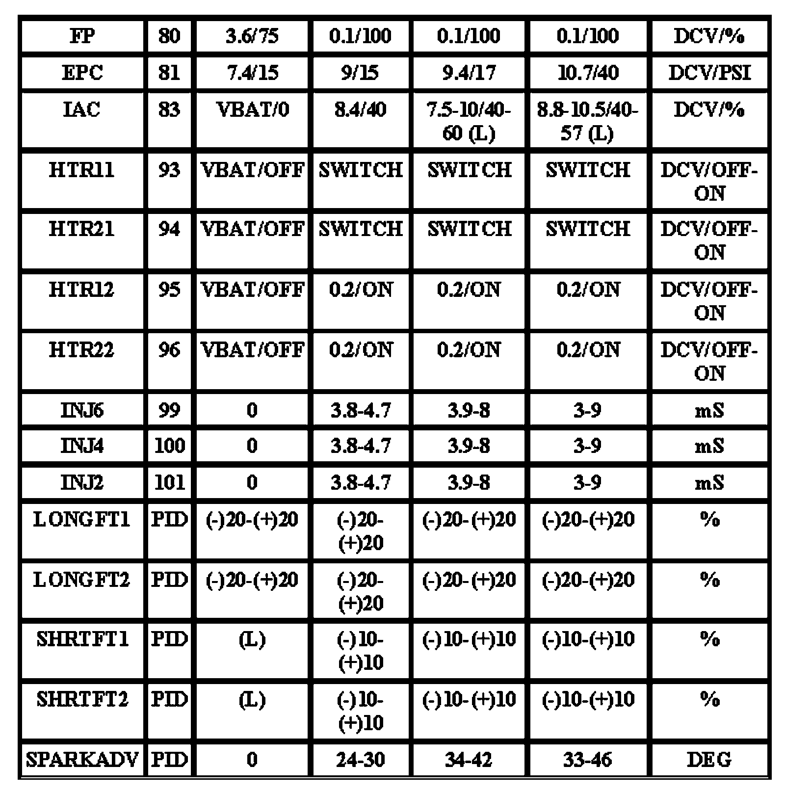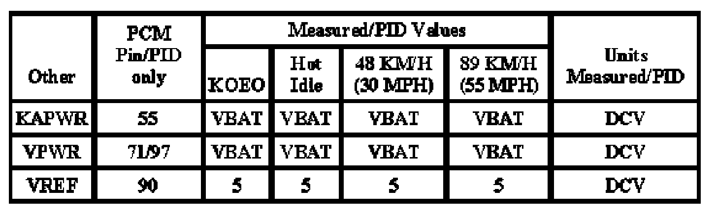 The Typical Diagnostic Reference Value Charts do not display fault PIDs. These are PIDs which indicate a hard fault with the circuit. They display a value of "YES" or "NO" and are PIDs ending with an "F".