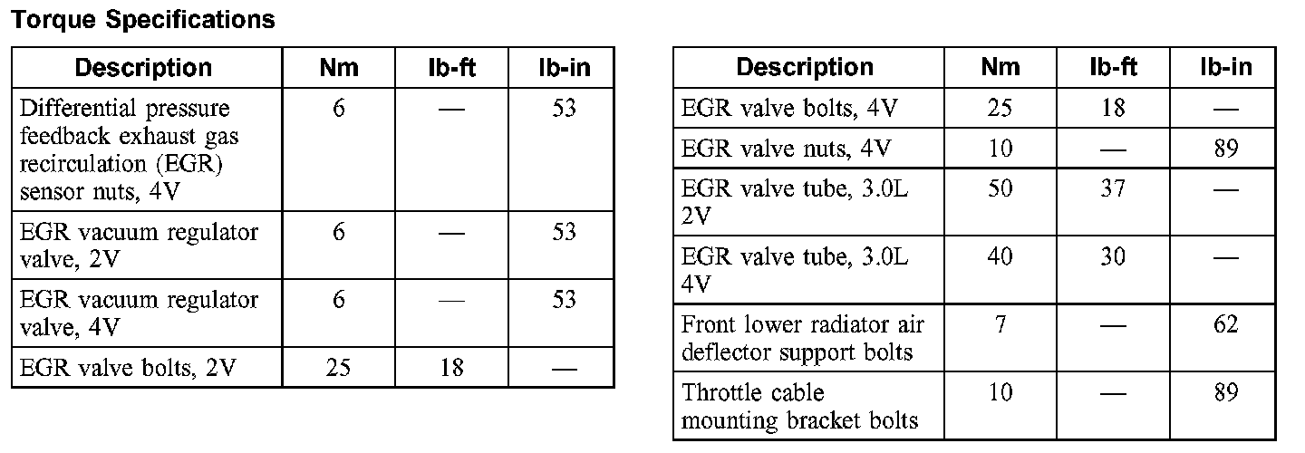 Torque Specifications: