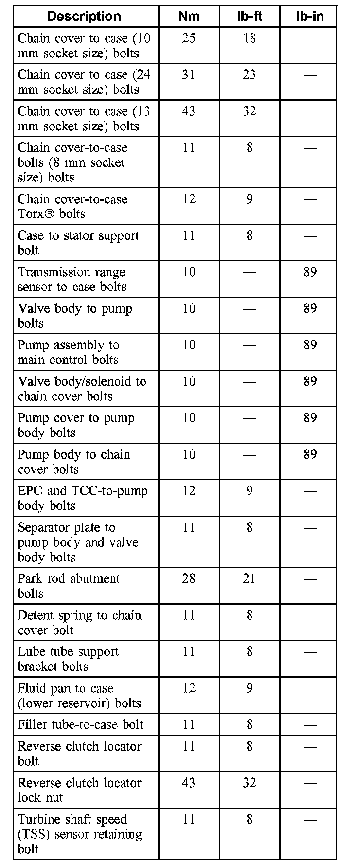 Torque Specifications