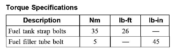 Torque Specifications: