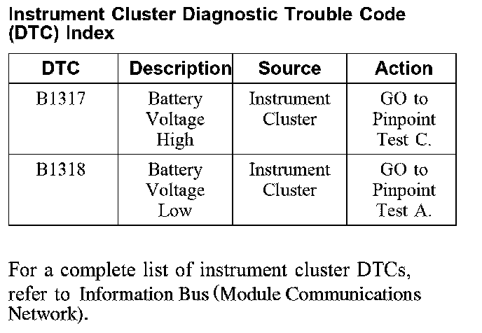 Instrument Cluster Diagnostic Trouble Code (DTC) Index