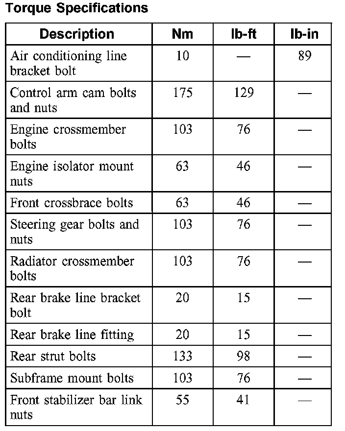 Torque Specifications: