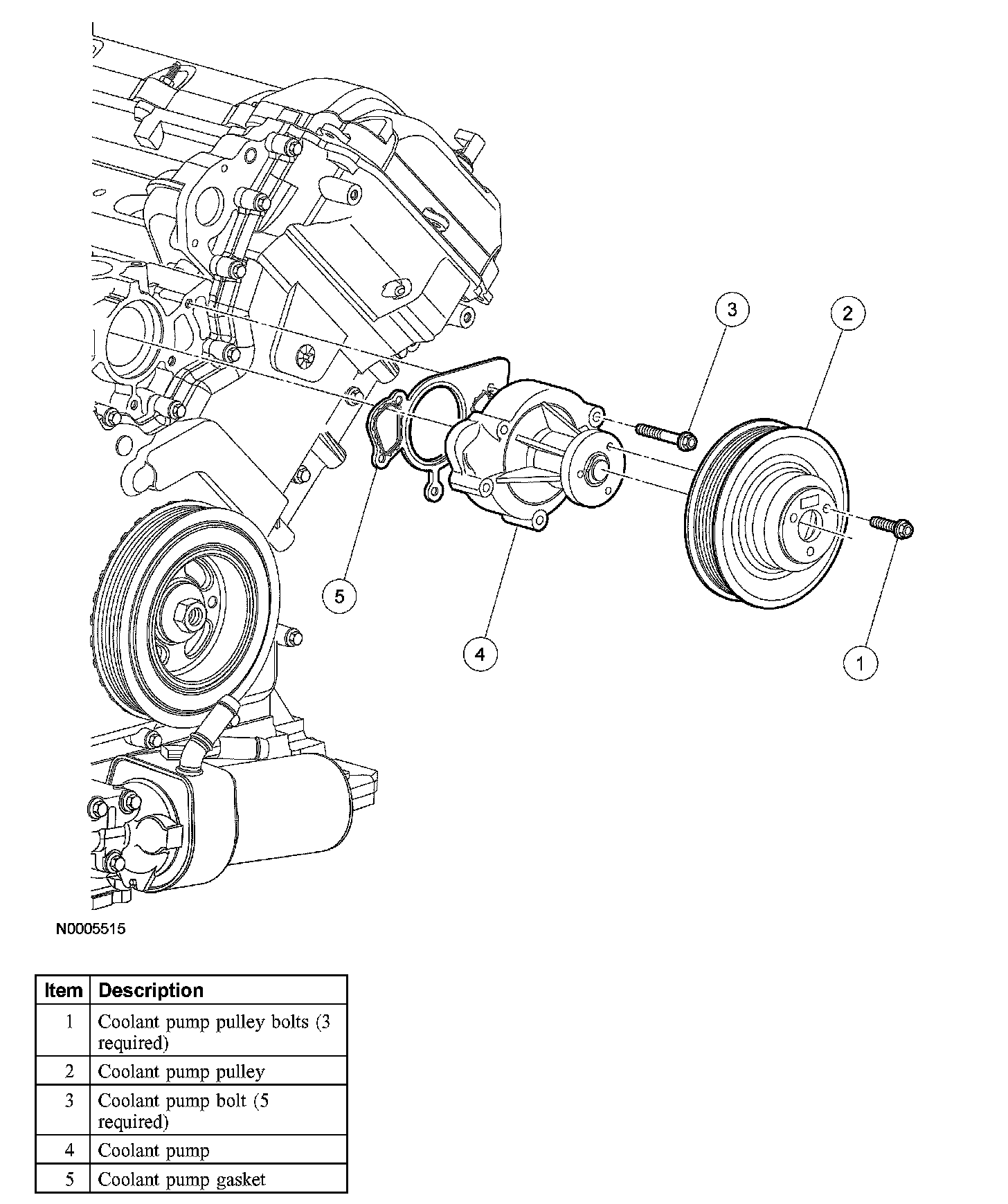 ^ Install a new coolant pump gasket.