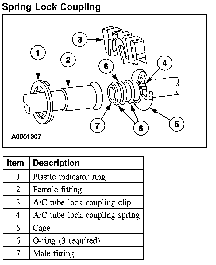 - Use only the O-ring seals listed in the Ford Master Parts Catalog for the spring lock coupling.