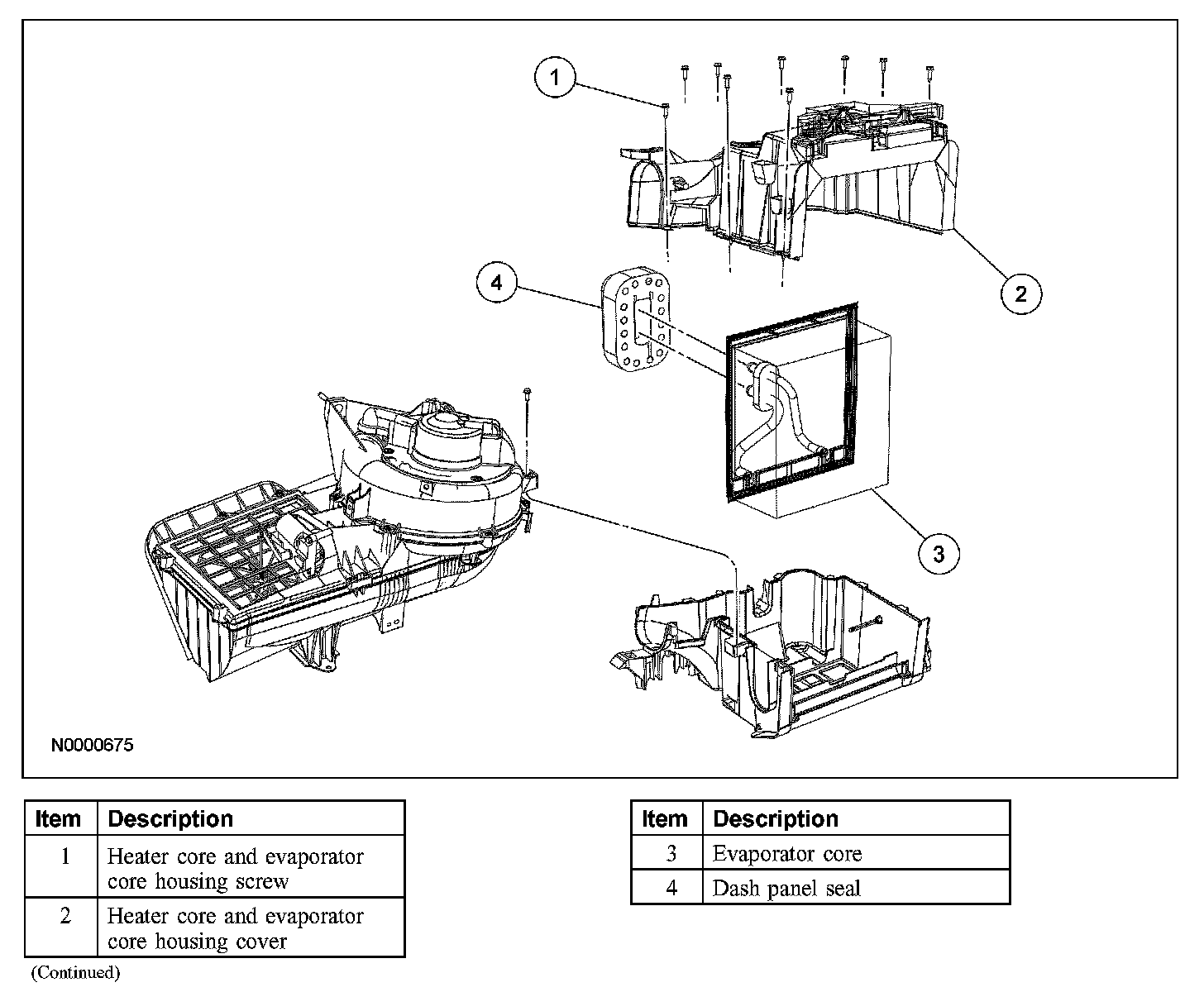 1. Remove the heater core and evaporator core housing.