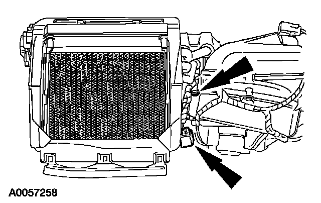 2. Remove the 2 screws which connect the air inlet housing to the evaporator core housing.