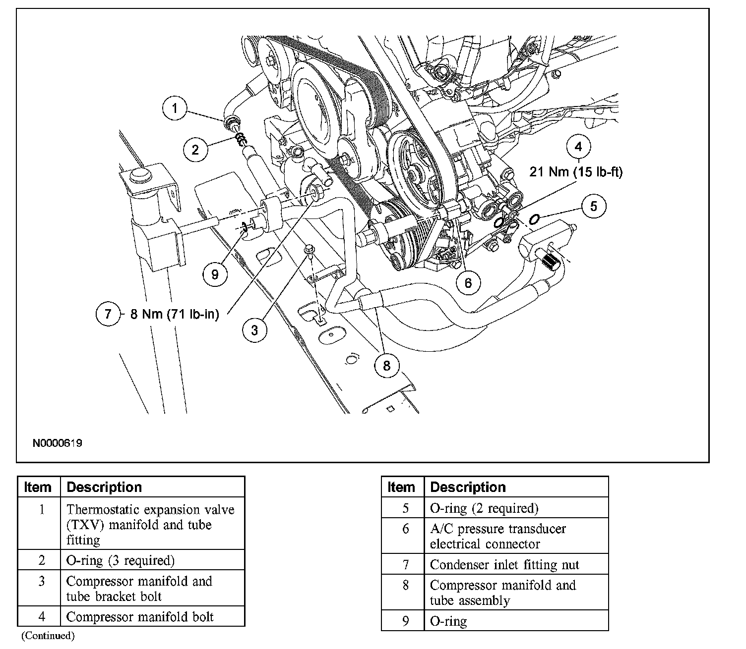 9. Remove the compressor manifold and tube assembly.