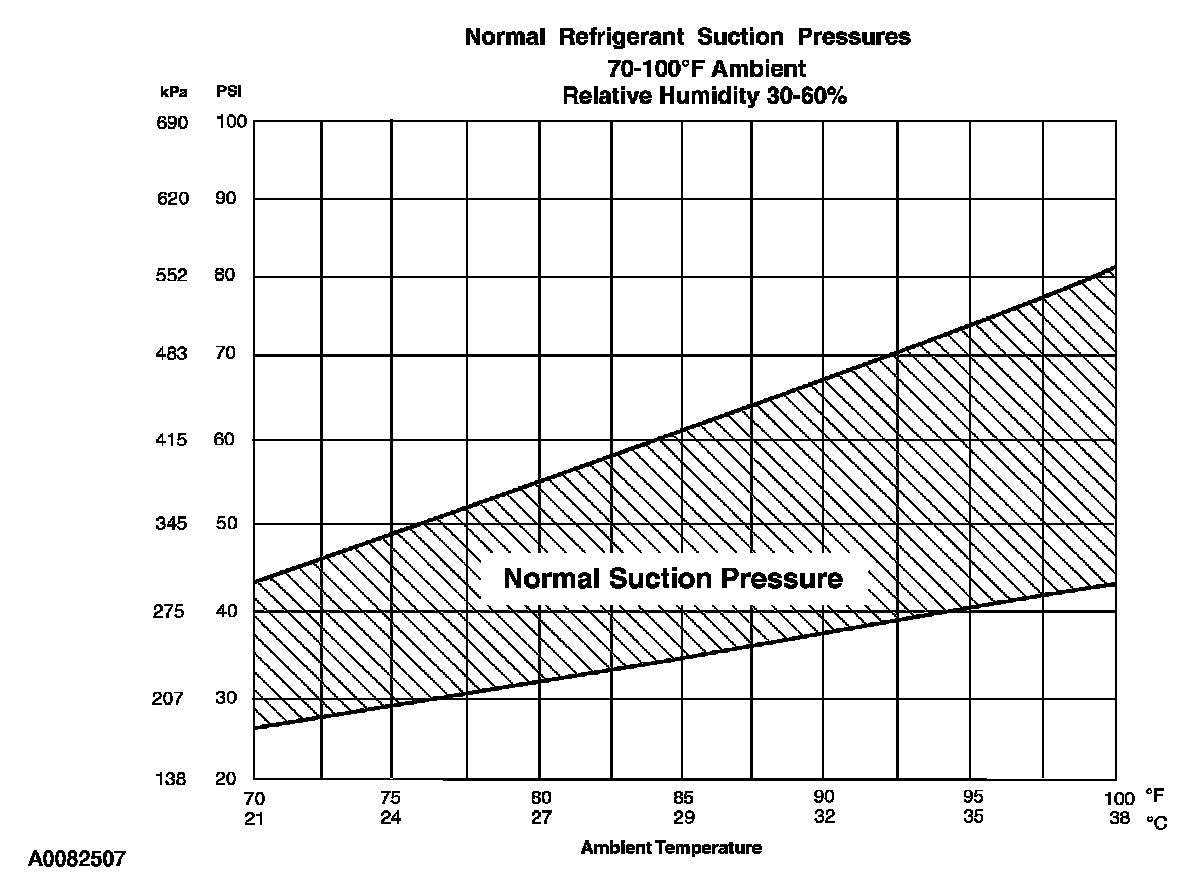 - The system performance can be evaluated and diagnosed by analysis of the compressor suction and discharge pressures. The following procedure is used to determine if the system is operating at normal pressures.