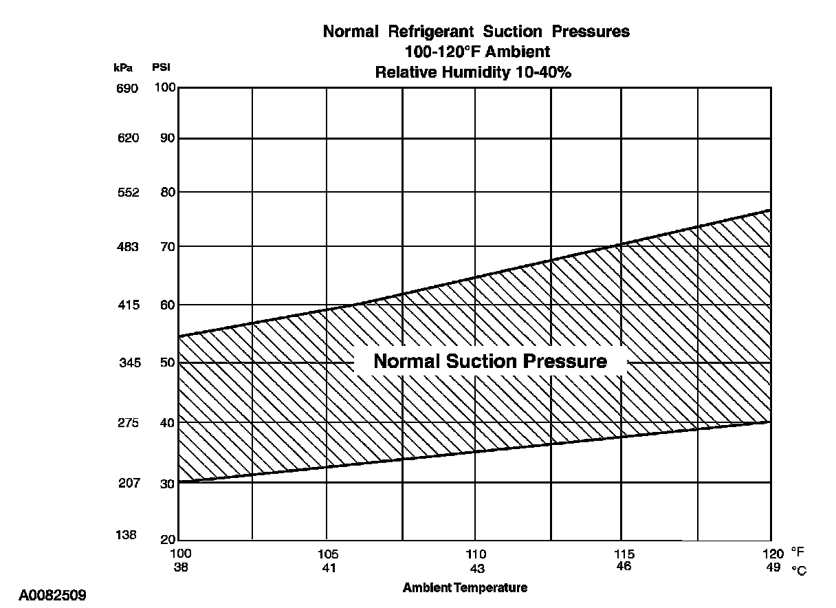 10. Determine if the suction pressure falls between normal operating limits using the Normal Refrigerant Suction Pressures chart.