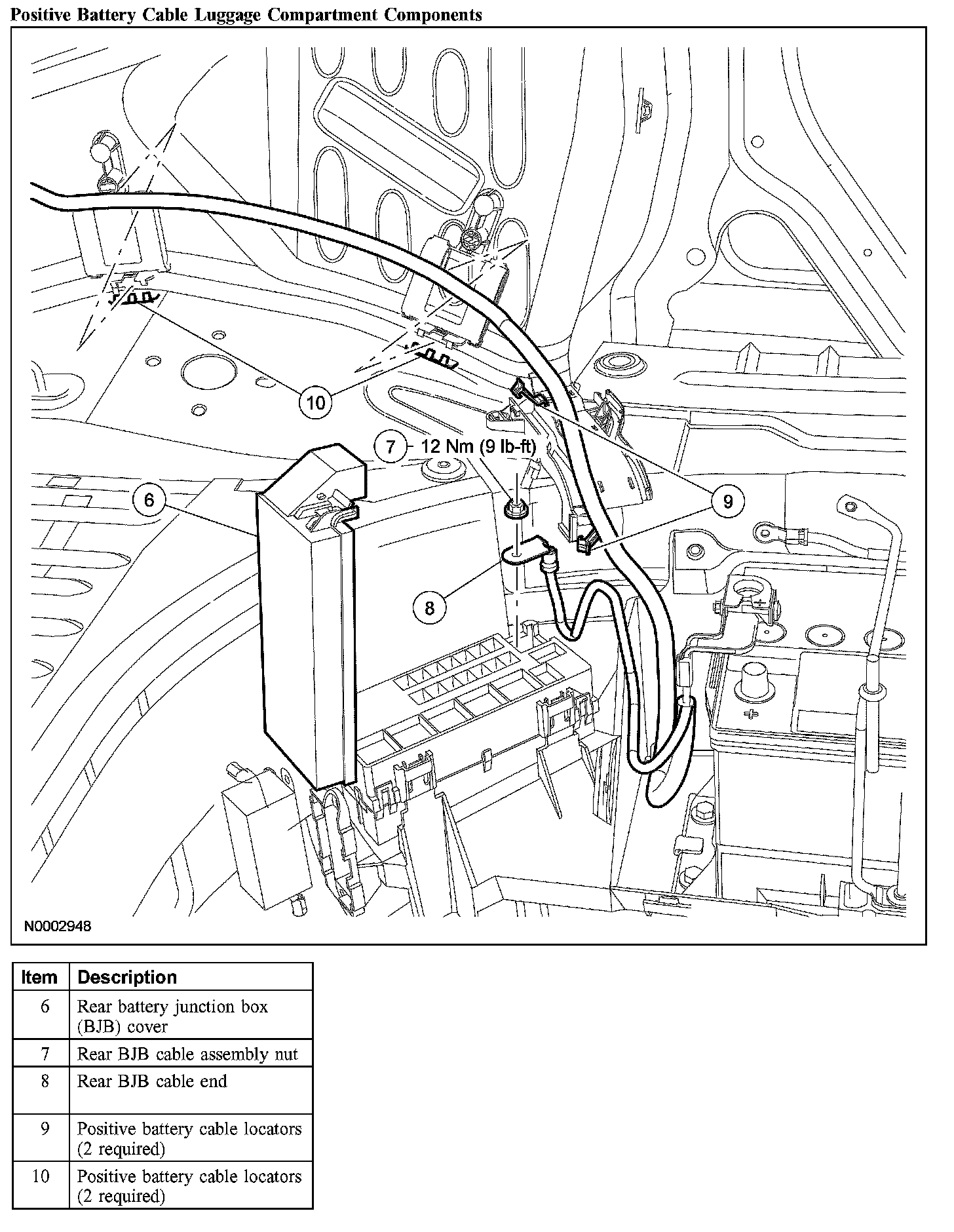 Positive Battery Cable Luggage Compartment Components: