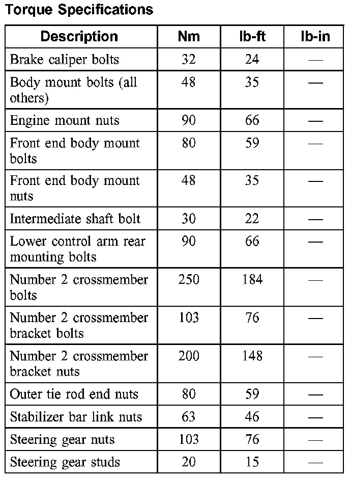Torque Specifications: