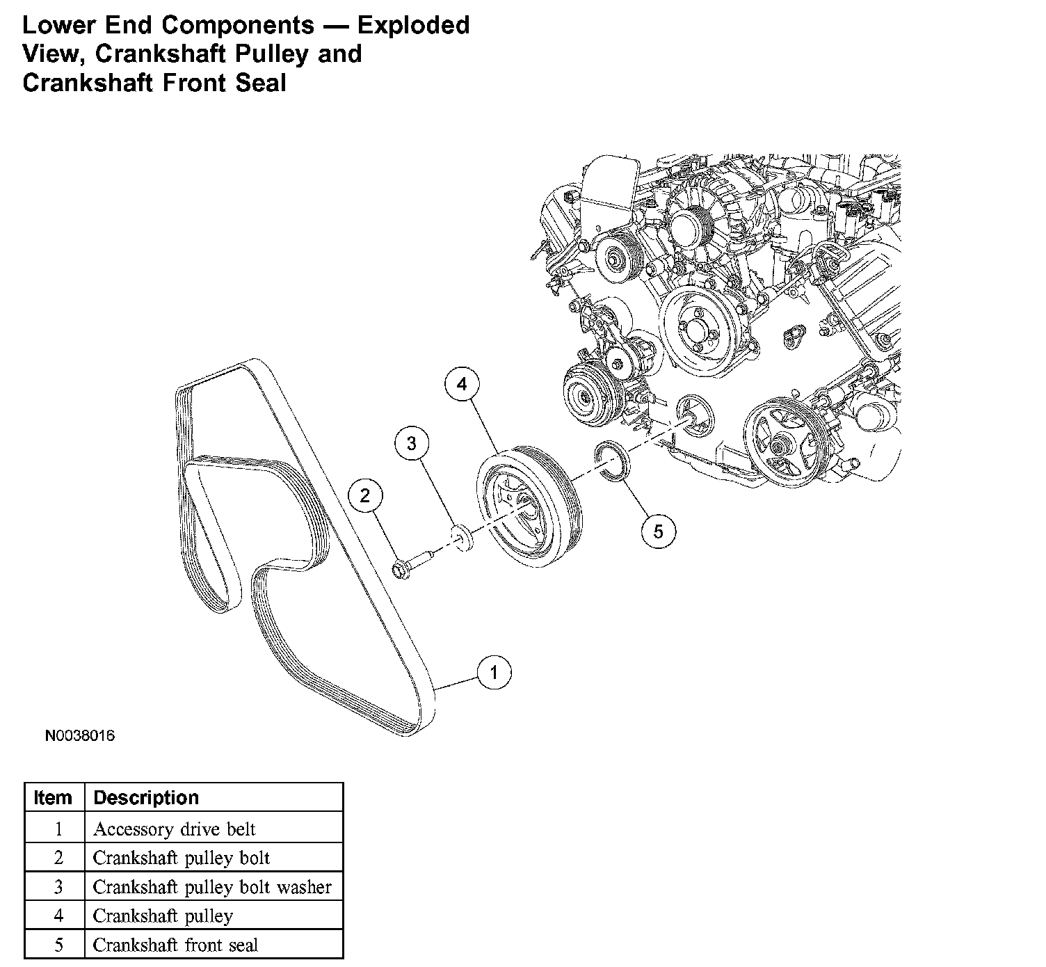 Lower End Components - Exploded View, Crankshaft Pulley and Crankshaft Front Seal