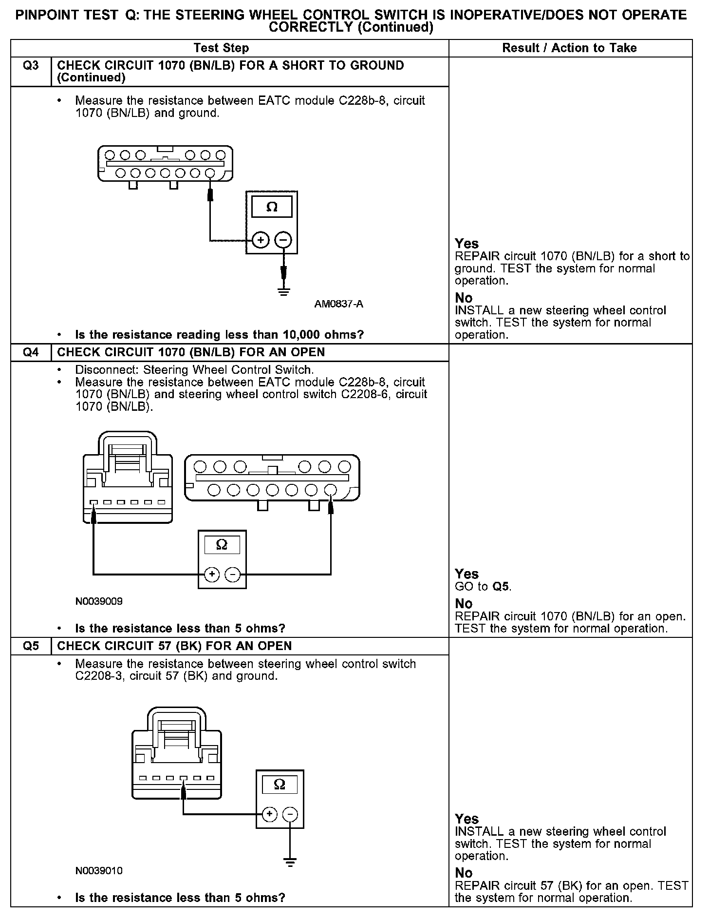 Test Q: The Steering Wheel Control Switch Is Inoperative/Does Not Operate Correctly