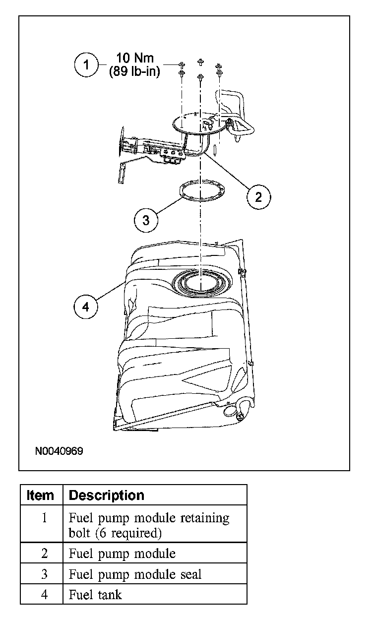 - Inspect the surfaces of the fuel pump module flange and fuel tank seal contact surfaces. Do not polish or adjust the seal contact area of the fuel pump flange or fuel tank. Install a new fuel pump module or fuel tank if the seal contact area is bent, scratched or corroded.