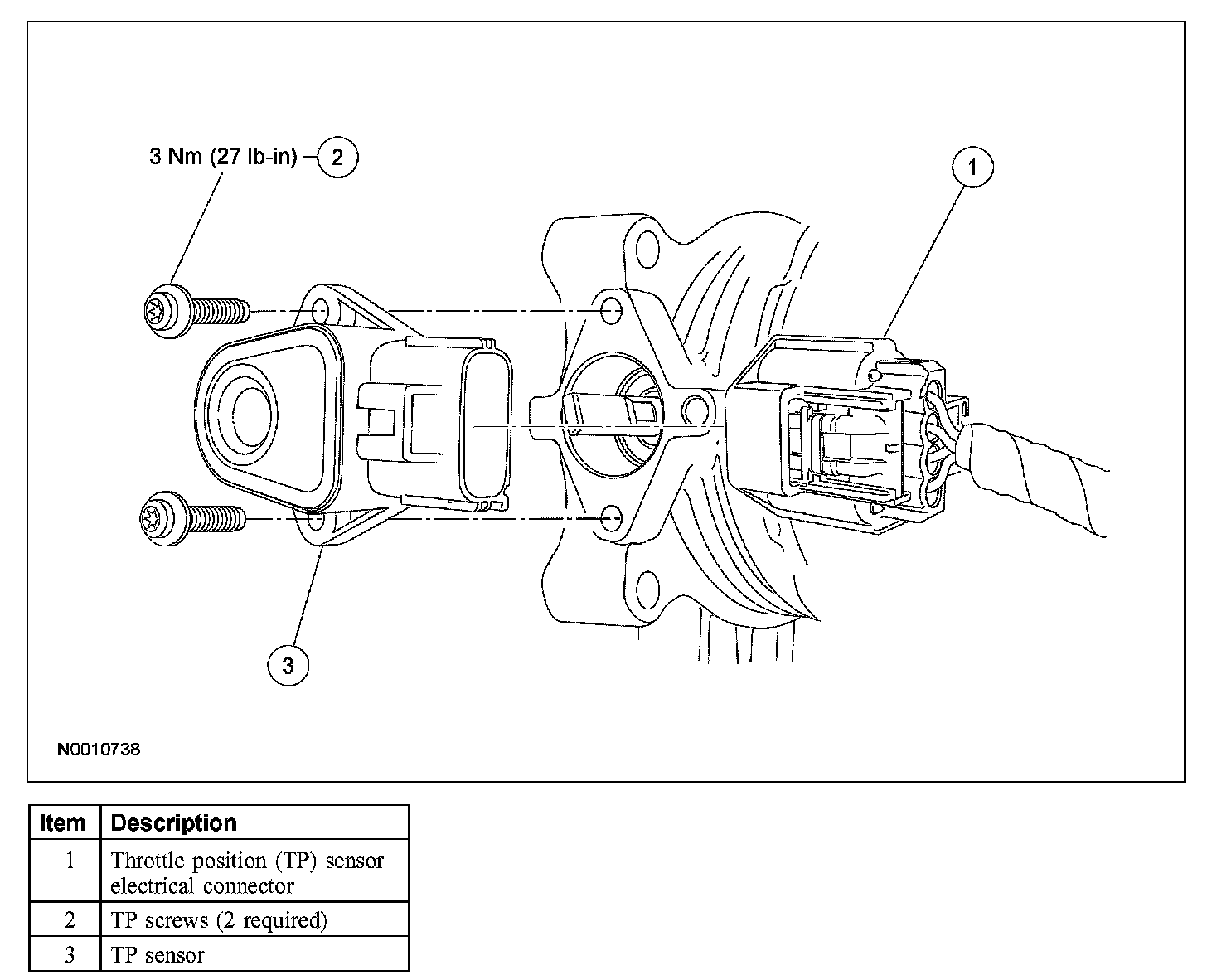 NOTE: When installing the new TP sensor, make sure that the radial locator tab on the TP sensor is aligned with the radial locator hole on the throttle body.