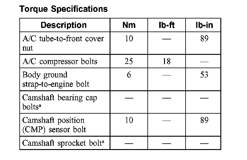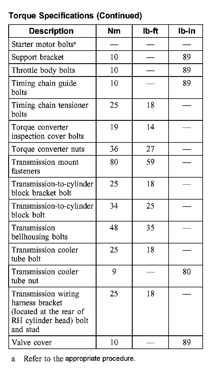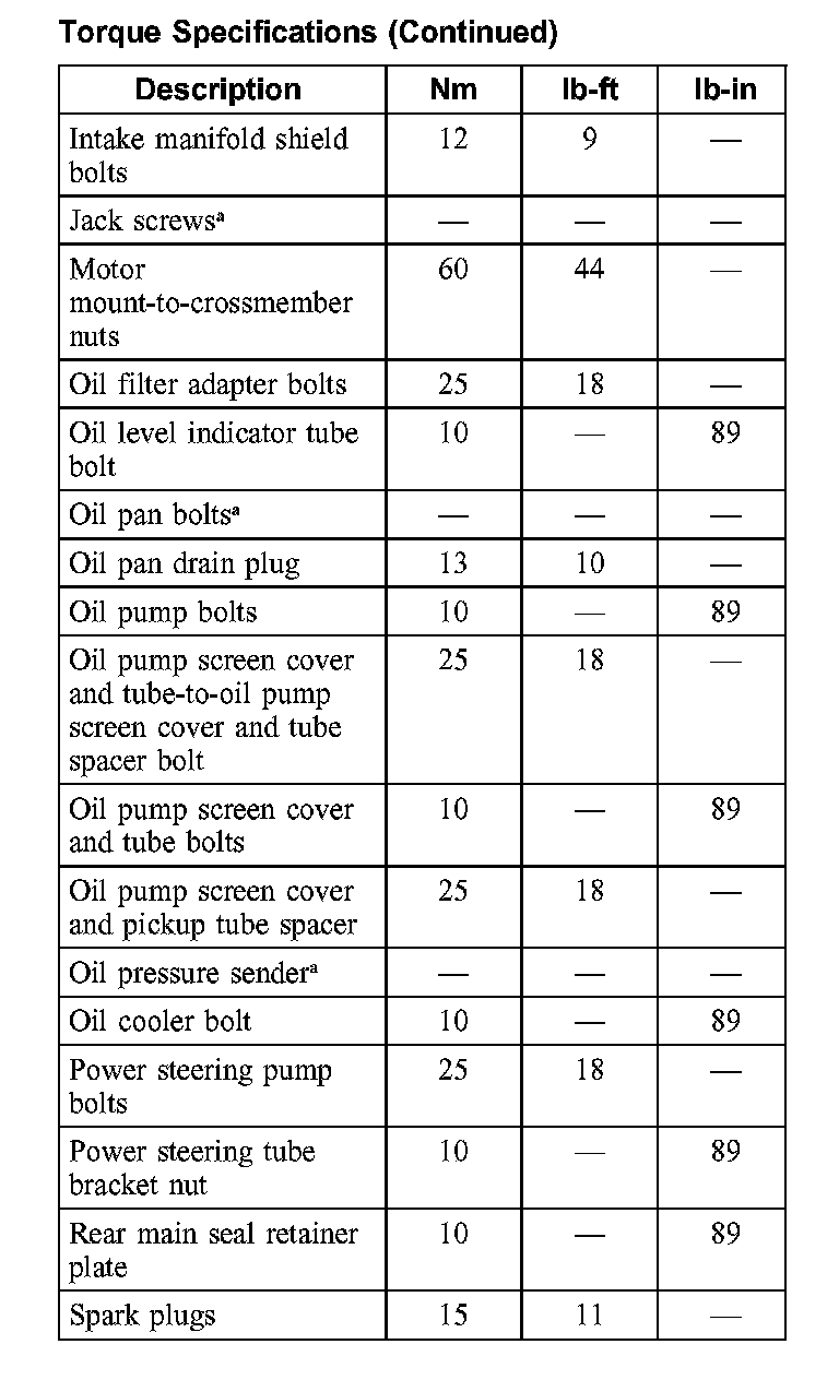 Torque Specifications: