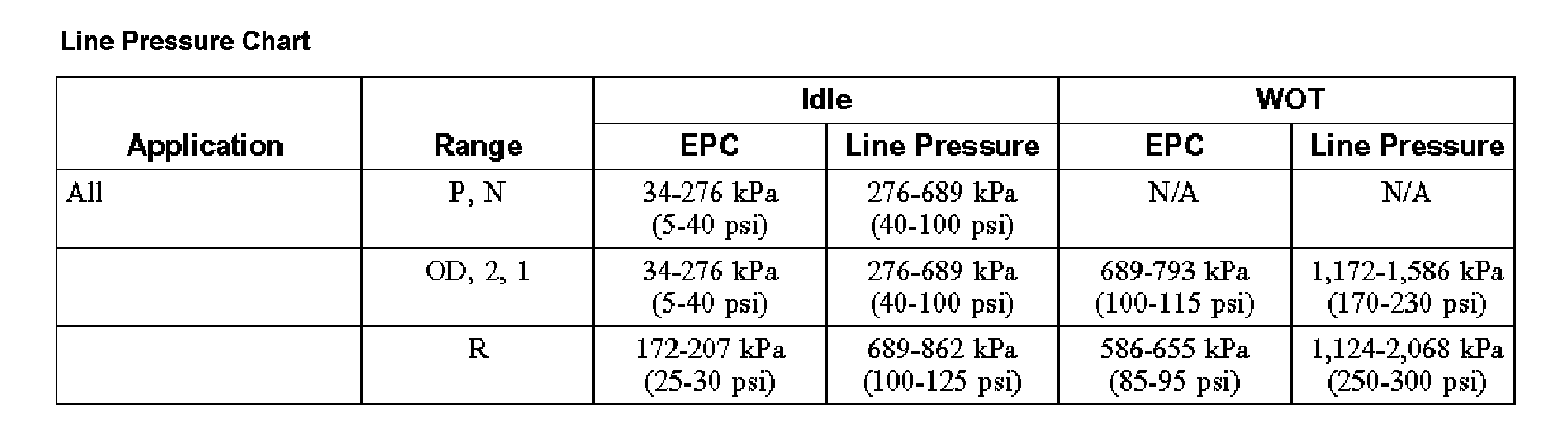 Line Pressure Chart: