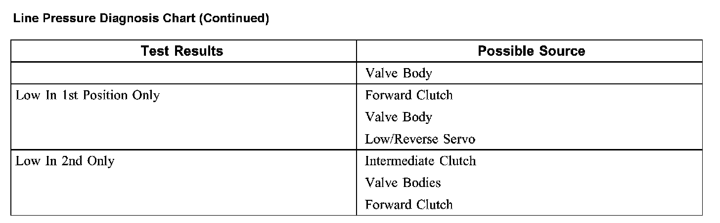 2. Start engine and check line pressures. Refer to the Line Pressure Chart to determine if line pressure is within specification.