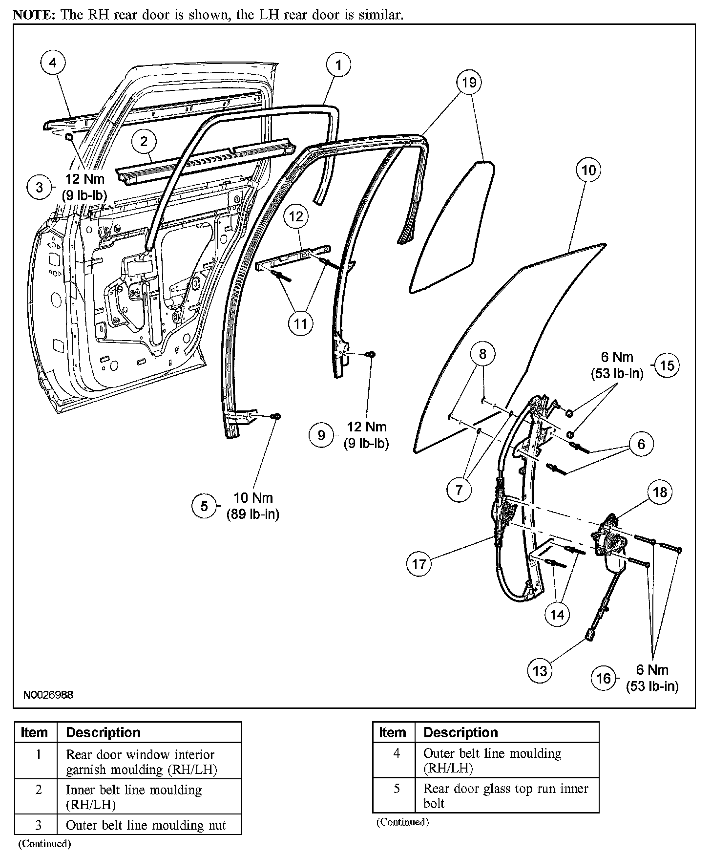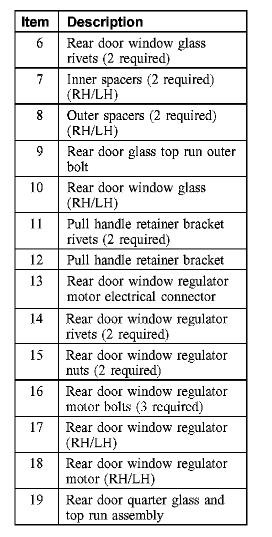 Rear Door Glass, Frames and Mechanisms - Exploded View