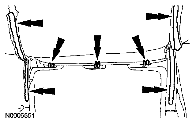 7. Route the side air bag module harness down the side of the backrest frame and install the pin-type retainers.