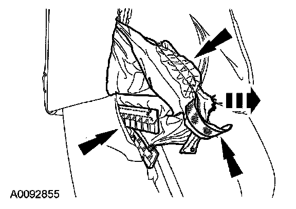 12. Release the side air bag module backrest trim cover chute J-clip from around the side air bag module cover.