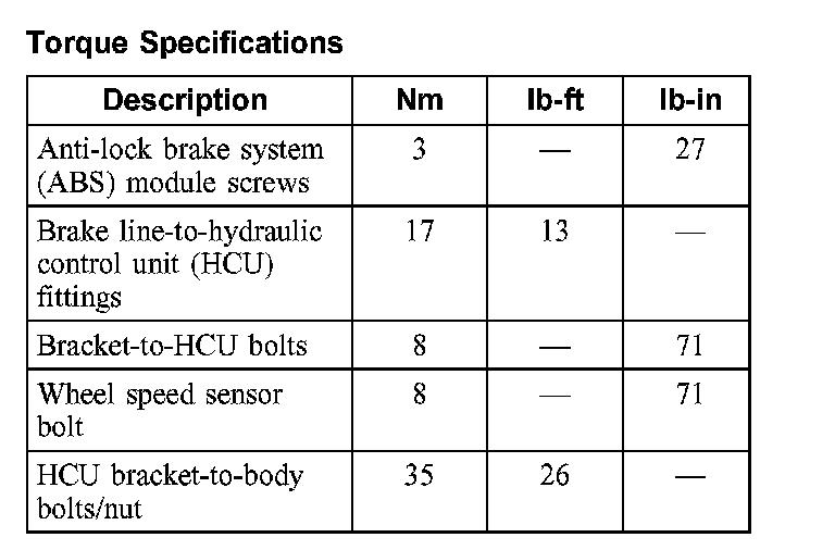 Torque Specifications: