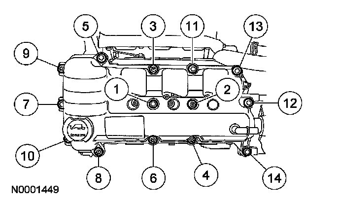 73. NOTE: The valve cover must be installed and the bolts and stud bolts tightened within 4 minutes of sealant application.