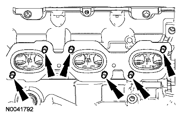 Apply a 5 mm (0.19 inch) dot of silicone gasket sealant to the front cover-to-LH cylinder head joints.