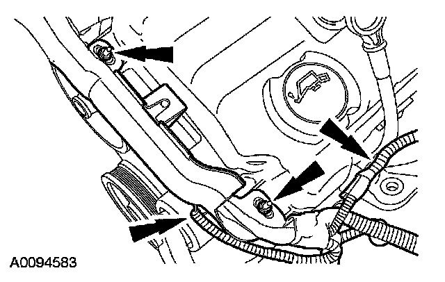 95. Position the power steering pump, reservoir bracket and tubes. Install the 3 nuts.