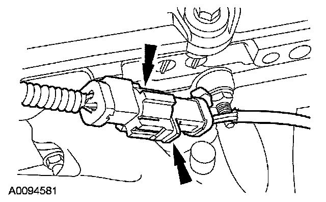 109. Connect the LH heated oxygen sensor (HO2S) electrical connector and attach the wiring retainer.