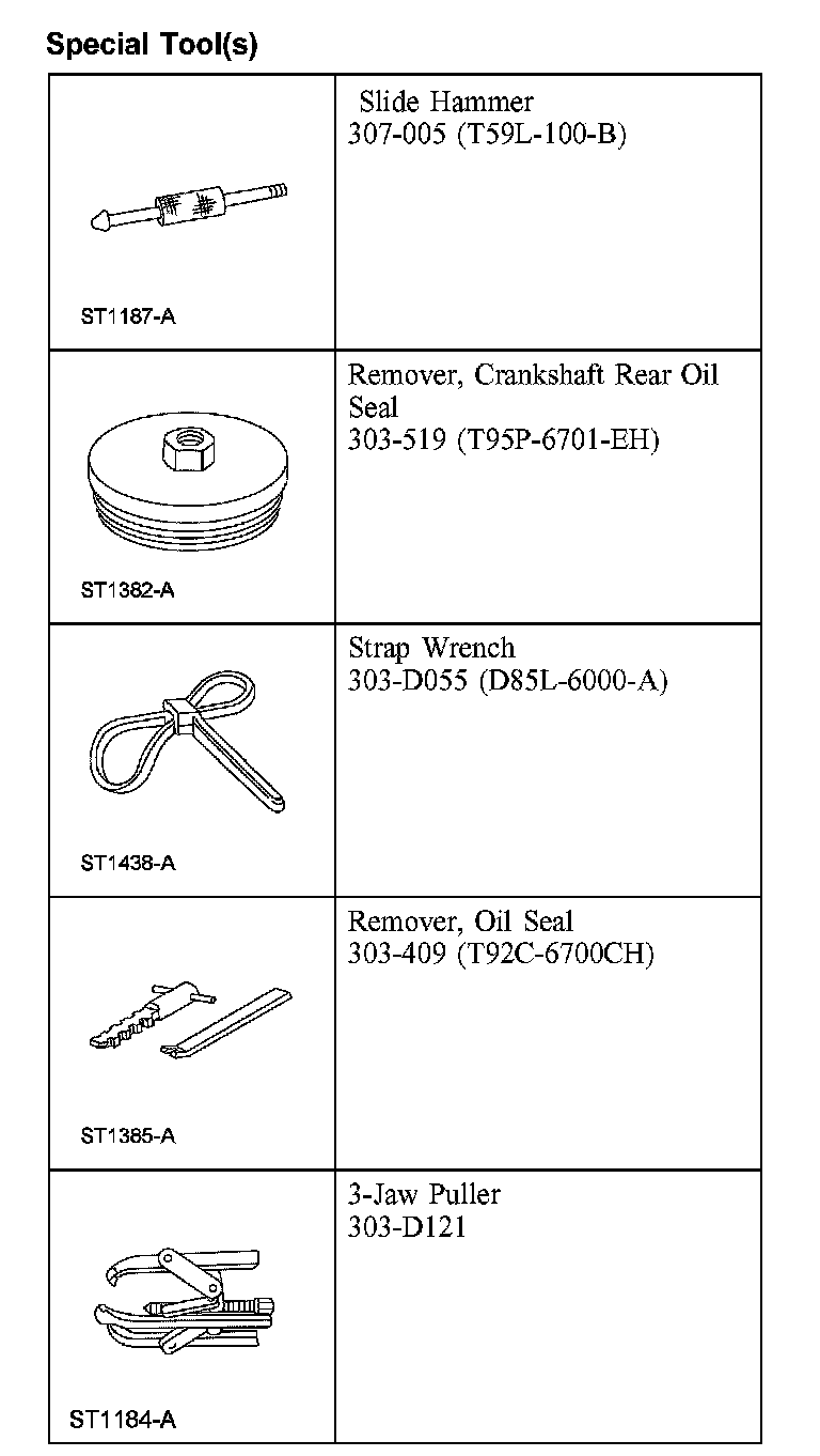 2. Using the special tools, remove and discard the crankshaft rear oil seal.