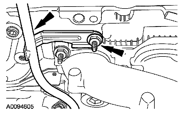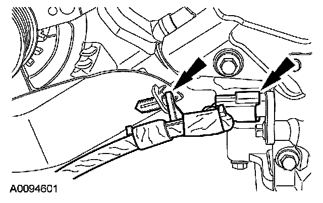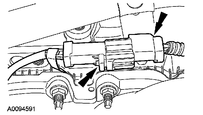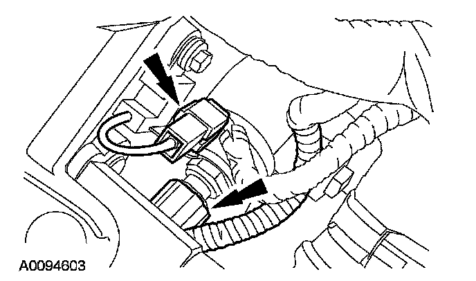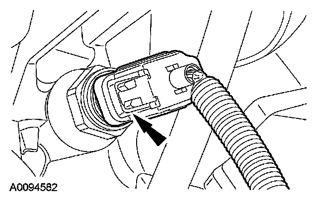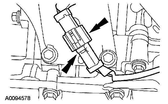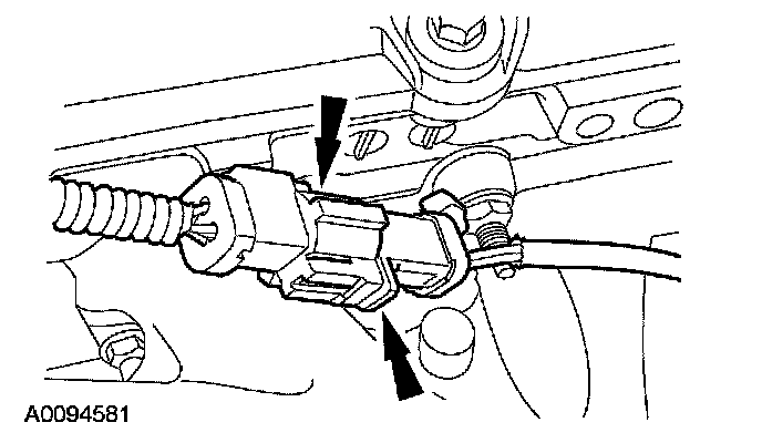 12. Disconnect the LH heated oxygen sensor (HO2S) electrical connector and detach the wiring retainer.