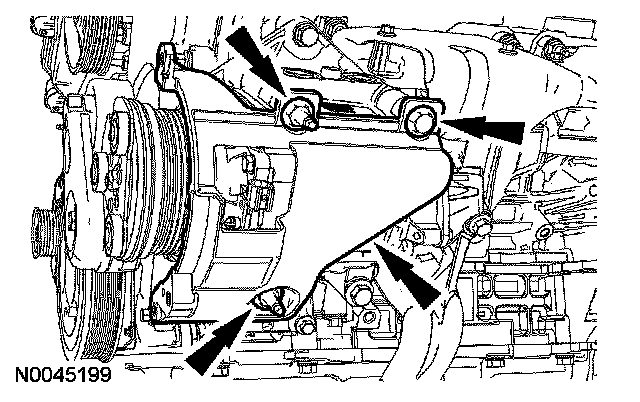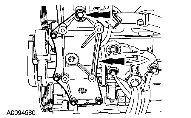 11. Remove the 5 bolts and the A/C compressor bracket.