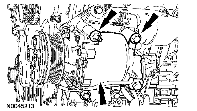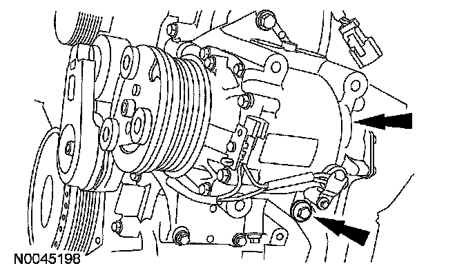 9. Remove the bolt and the A/C compressor.