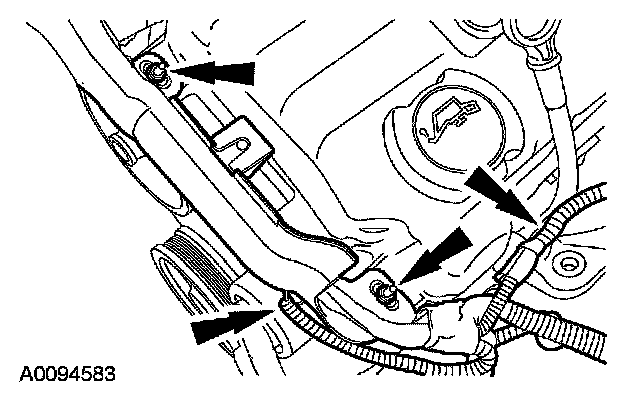 26. Remove the 3 nuts and the power steering pump, reservoir and tubes.