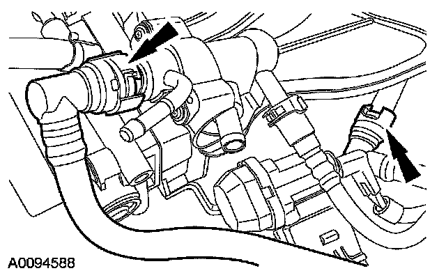 35. Disconnect the bypass and the coolant pump hoses.