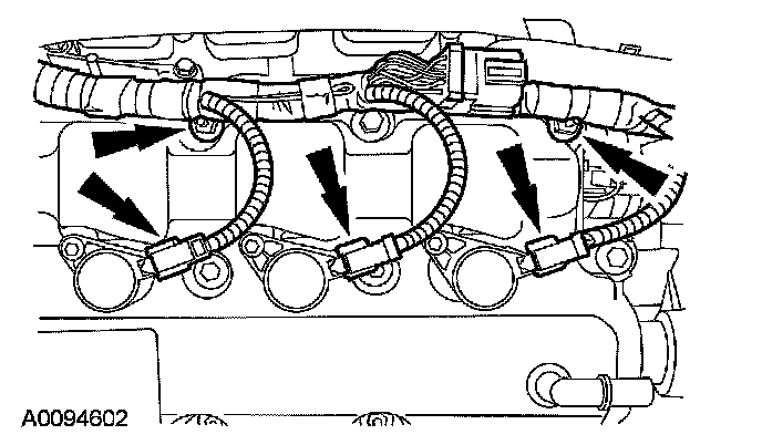 29. Disconnect the RH ignition coil electrical connectors and detach the wiring retainers.