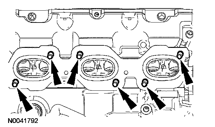 45. Remove and discard the 6 LH exhaust manifold nuts.