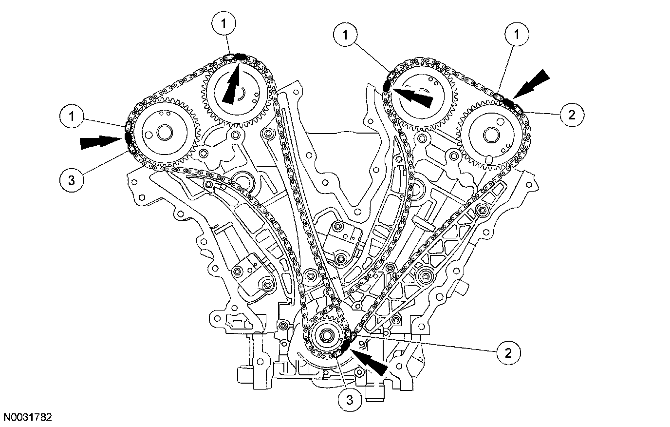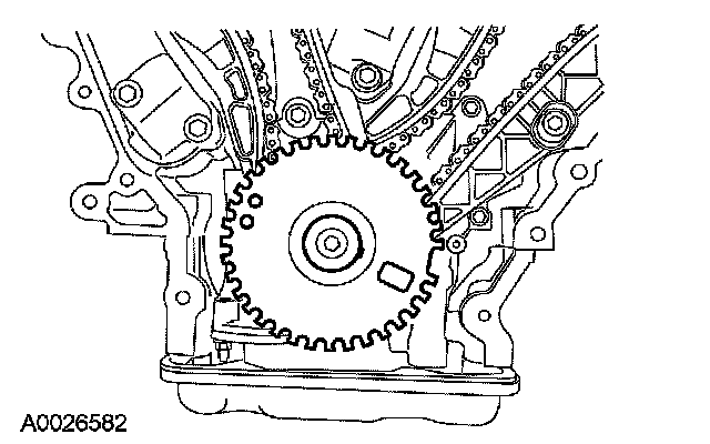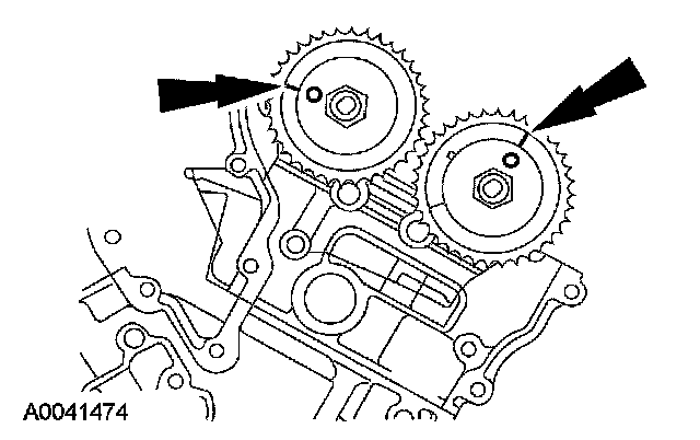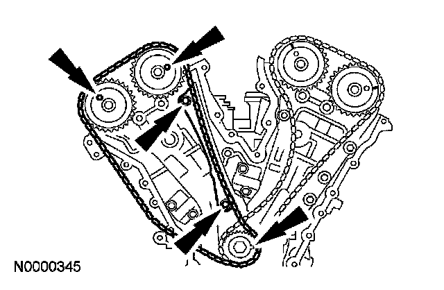 6. If timing marks in the timing chains are not evident, use a permanent-type marker to mark the crankshaft and camshaft timing marks on the LH and RH timing chains.
