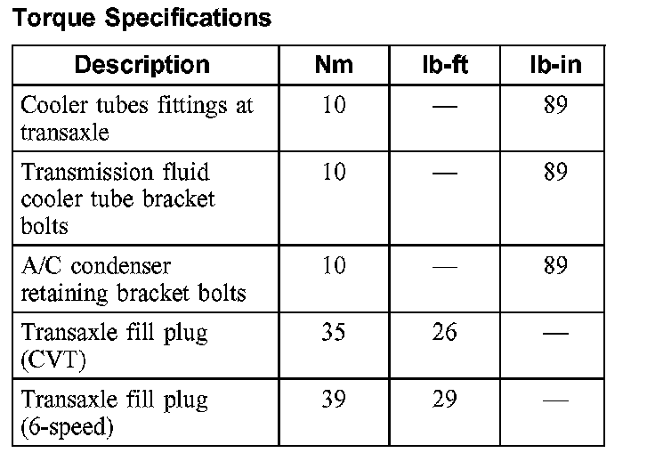Torque Specifications: