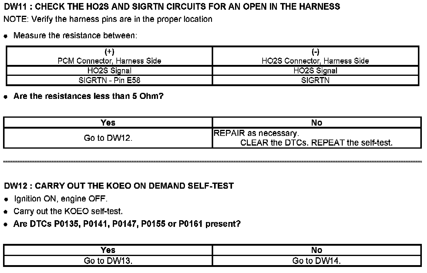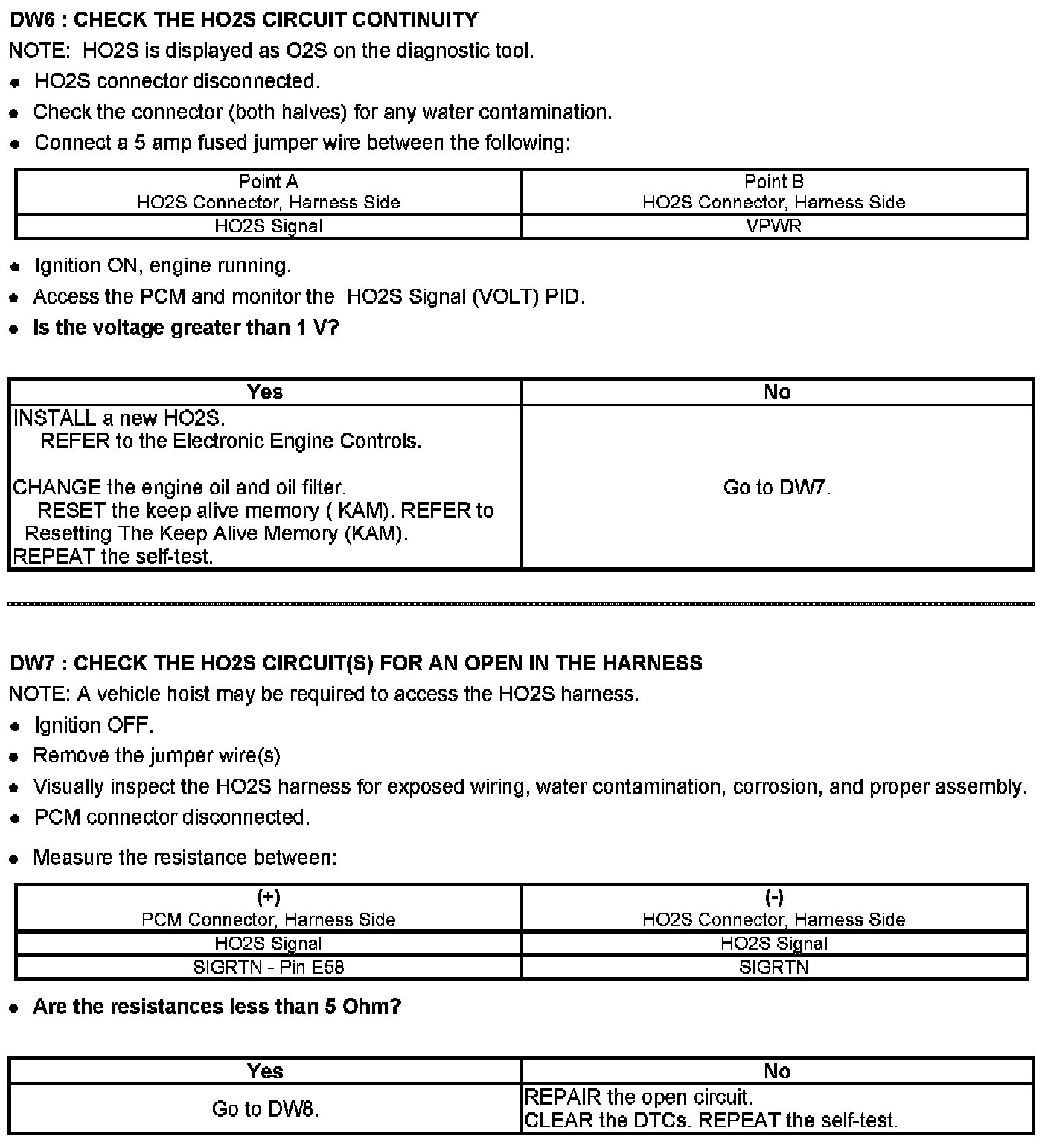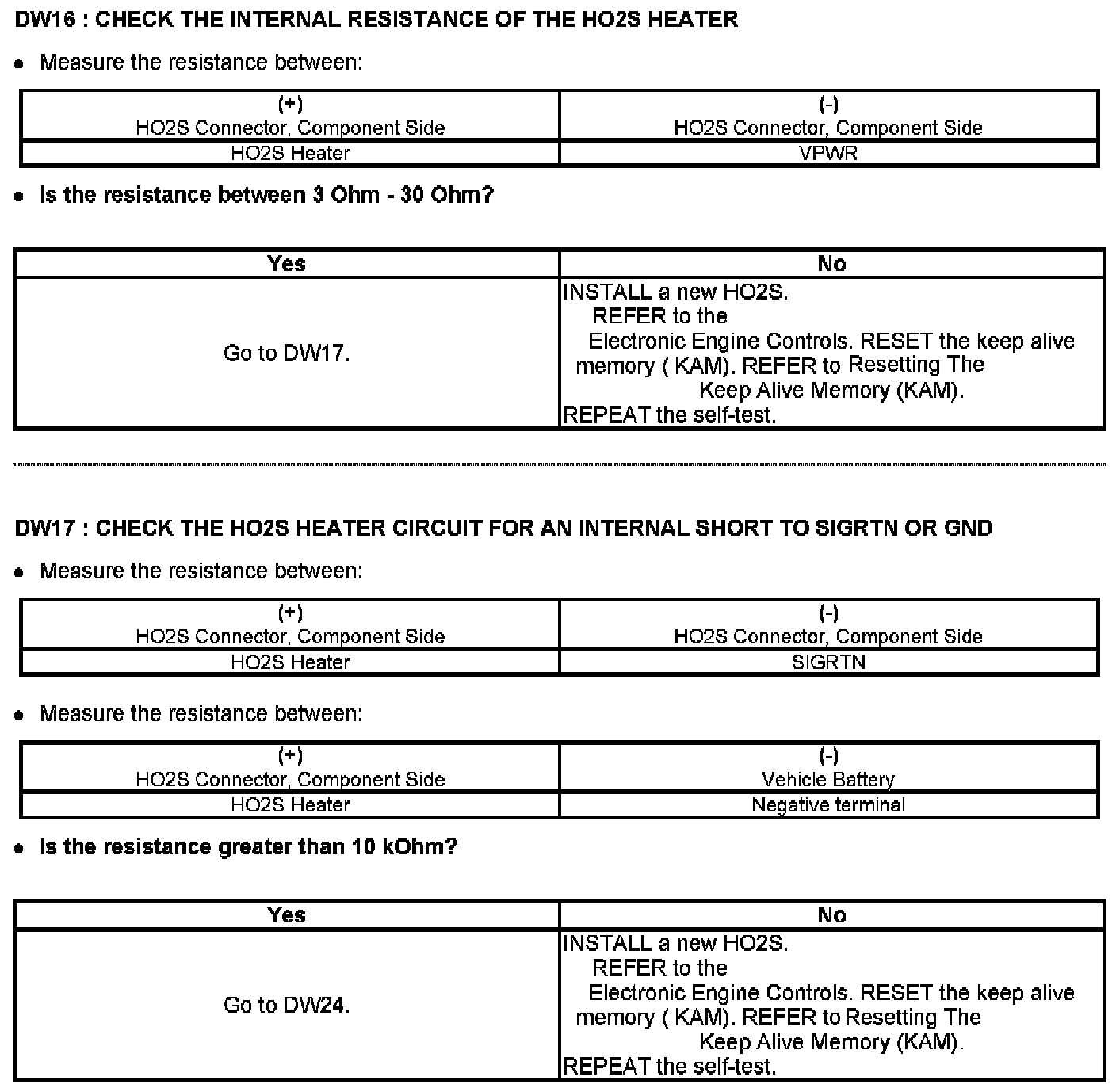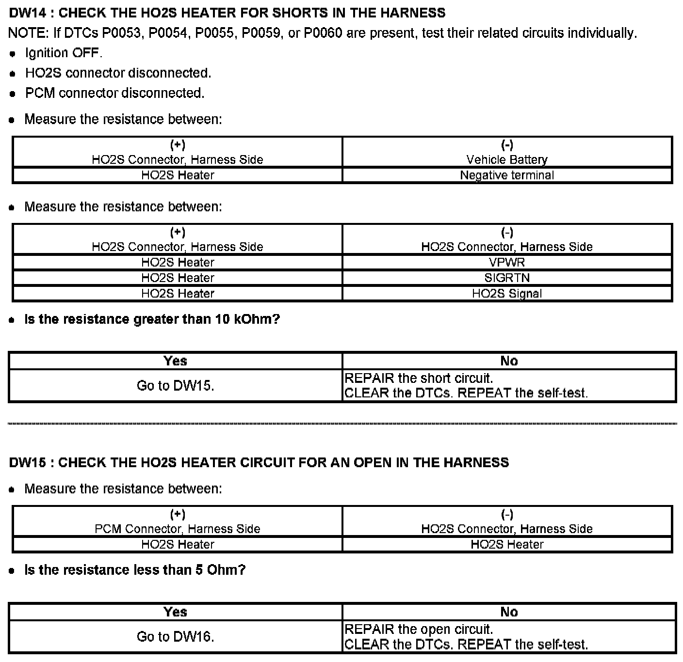 Tests DW: Heated Oxygen Sensor (HO2S)